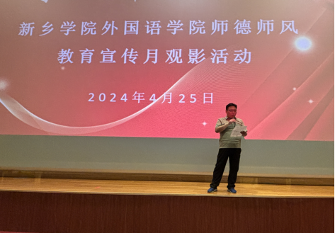活动伊始,外国语学院党委书记田大治发表讲话。田书记指出,教师是教育的根本,师德是教师的灵魂。希望各位教师以张桂梅老师为榜样,不断学习,提升自我,努力成为“四有”好老师、新时代“大先生”。在自己平凡而又神圣的岗位上,弘扬高尚师德,把对教育事业、对学校、对学生的爱心与责任落实到每件事、每句话、每个行动中,让学生在我们的爱心与关注下健康成长。