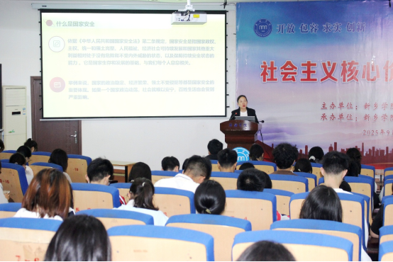 为帮助2025级新生筑牢正确价值根基,深刻把握国家安全与个人成长的内在关联,外国语学院于2025年10月15日在A05-108报告厅举办“社会主义核心价值观大讲堂”活动。本次讲座由外国语学院党委副书记沈敬萍主讲,聚焦“国家安全”核心主题,通过系统阐释与案例分析,为新生夯实维护国家安全的思想基石,切实引导其牢固树立“国家安全无小事”的责任意识。