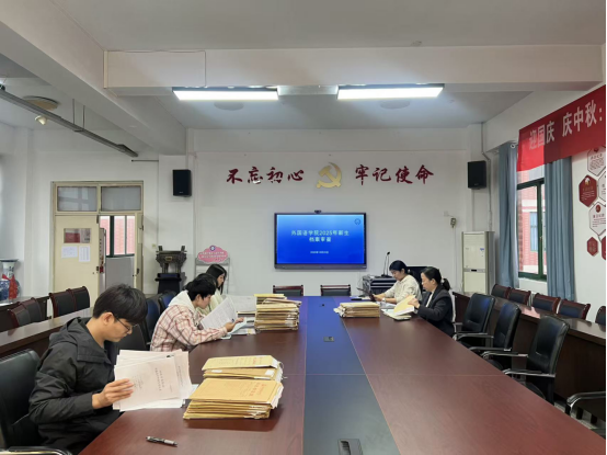 为了贯彻落实《新乡学院2025年新生入学资格审查、录取资格复查工作方案》,严格规范做好2025年新生入学资格审查、录取资格复查工作,充分维护学生合法权益,外国语学院于2025年10月20日在A11-421进行2025年新生入学资格审查工作,新生入学资格审查工作领导小组副组长沈敬萍和小组全体成员参加。