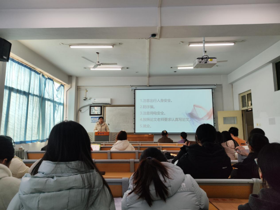 在假期安全教育方面,辅导员重点叮嘱离校前关电源、关门窗,查行李证件等,选择正规交通工具,拒绝“黑车”与超载车辆;到家后要及时向辅导员报平安,保持通讯畅通;提醒同学们在家期间要注意保护个人信息与网络安全、防范诈骗等关键内容。针对冬季气候特点,还普及了防寒保暖、呼吸道疾病预防等健康知识,帮助同学们全面了解相关健康常识,确保度过一个健康平安的假期。