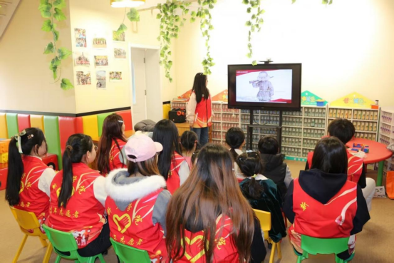 活动伊始,志愿者以童趣生动、通俗易懂的语言开启课堂,清晰介绍本次活动主题与流程。现场同步开展“拍手认英雄”趣味暖场互动,瞬间点燃全场氛围,自然引出东北抗联小英雄小马倌的经典故事,充分激发了小朋友们聆听红色故事、学习双语知识的浓厚兴趣。