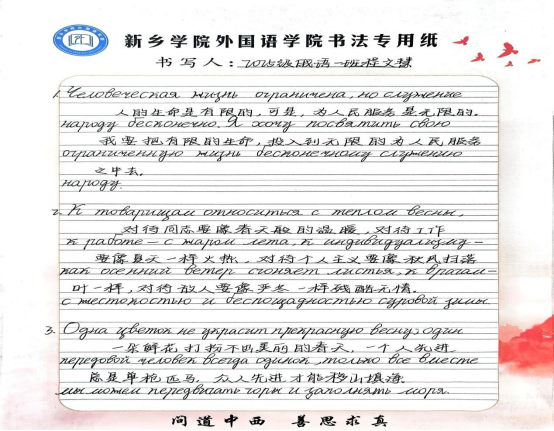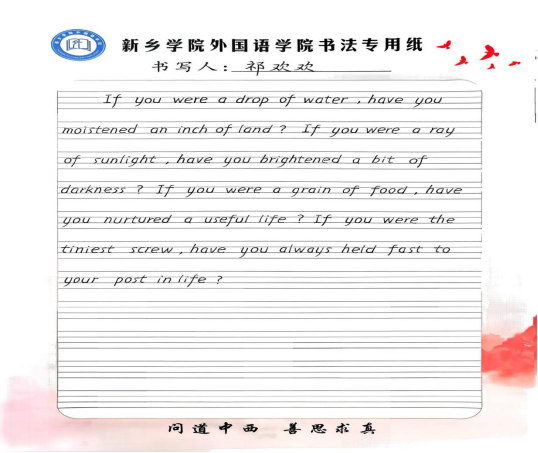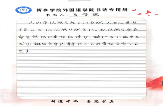 为深入学习弘扬雷锋精神,践行社会主义核心价值观,扎实推进“一月一主题”思想教育工作,3月10日至16日,新乡学院外国语学院组织开展“多语学雷锋,青春传温暖”学雷锋主题金句摘抄活动。